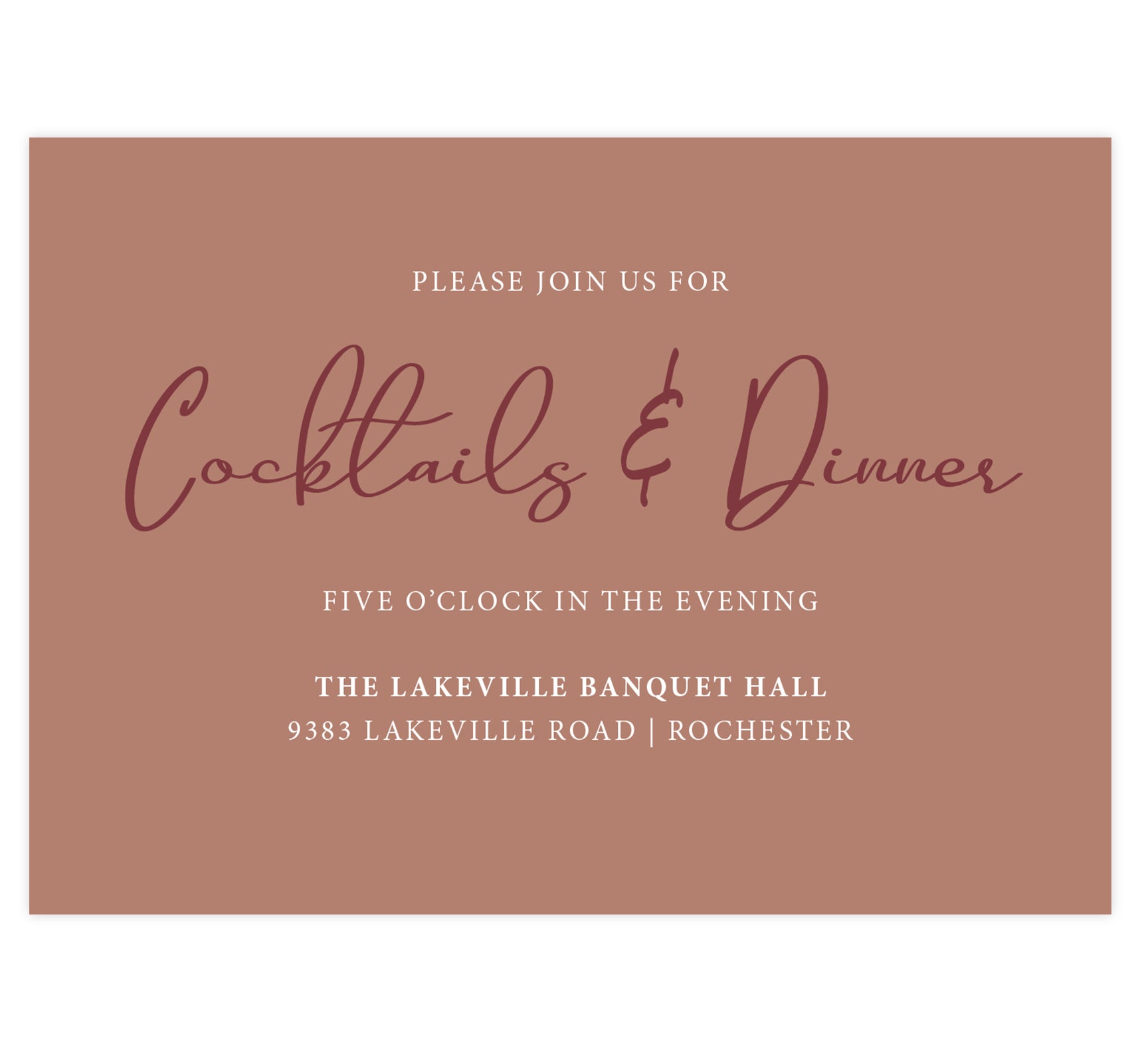 Invite your guests to your wedding reception! Printed size is 4.875" x 3.5" (portrait) or 3.5" x 4.875" (landscape) printed with high quality, full-color, full-bleed, one sided printing on either matte or glossy 100lb paper.